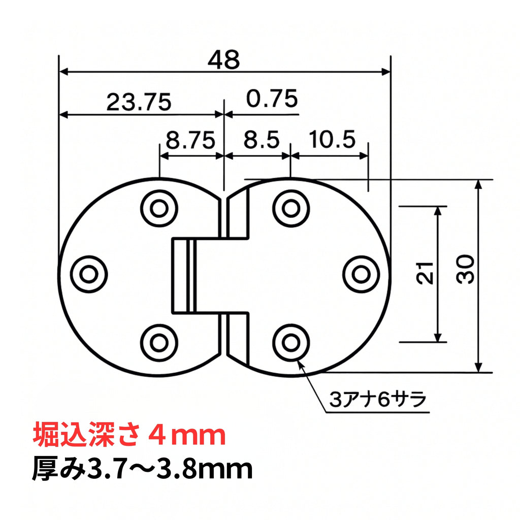 カブセ代4mm・掘り込み深さ4mm