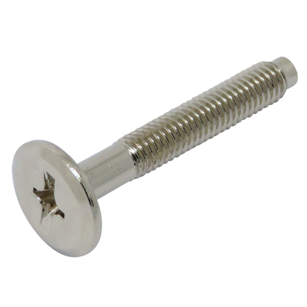頭径16mm・頭厚2.3mmの広い座面で部材をしっかり固定し、仕上げは鉄製・ニッケルメッキまたはGBメッキから選択可能