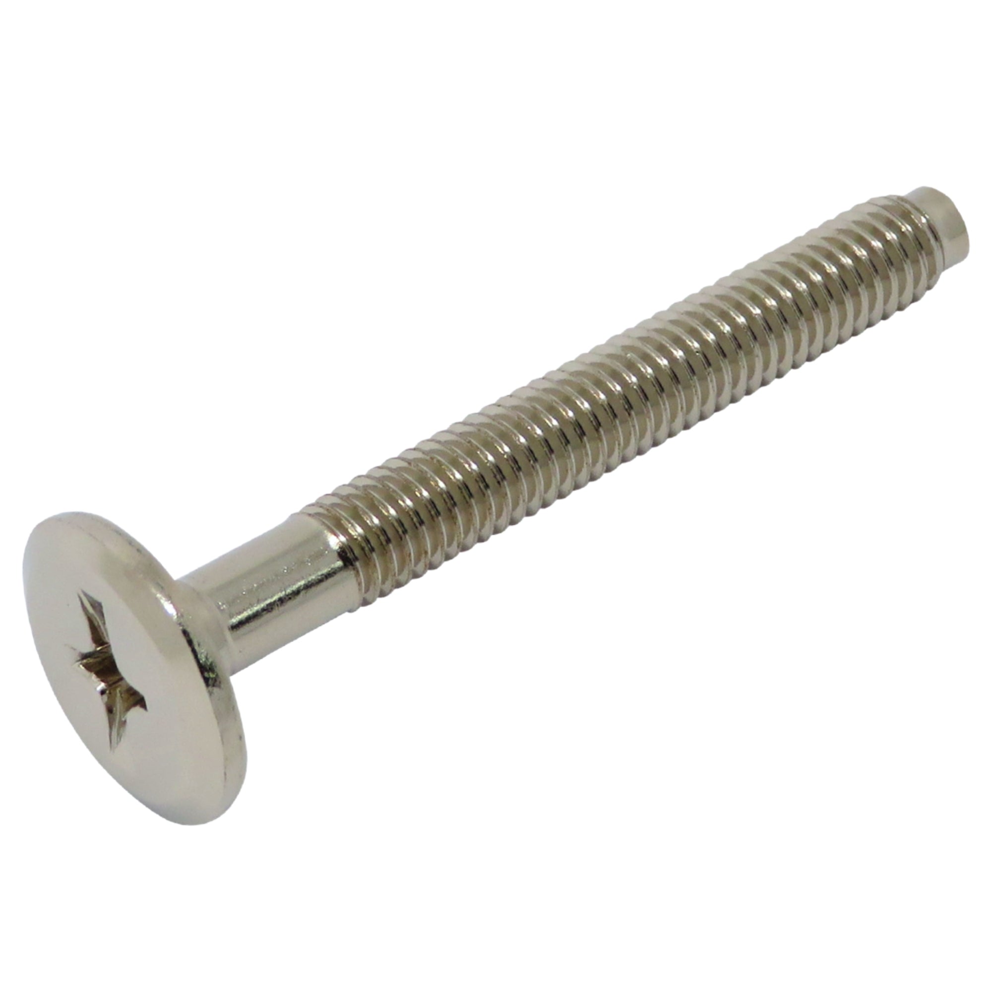 頭径16mm・頭厚2.3mmの広い座面で部材をしっかり固定し、仕上げは鉄製・ニッケルメッキまたはGBメッキから選択可能